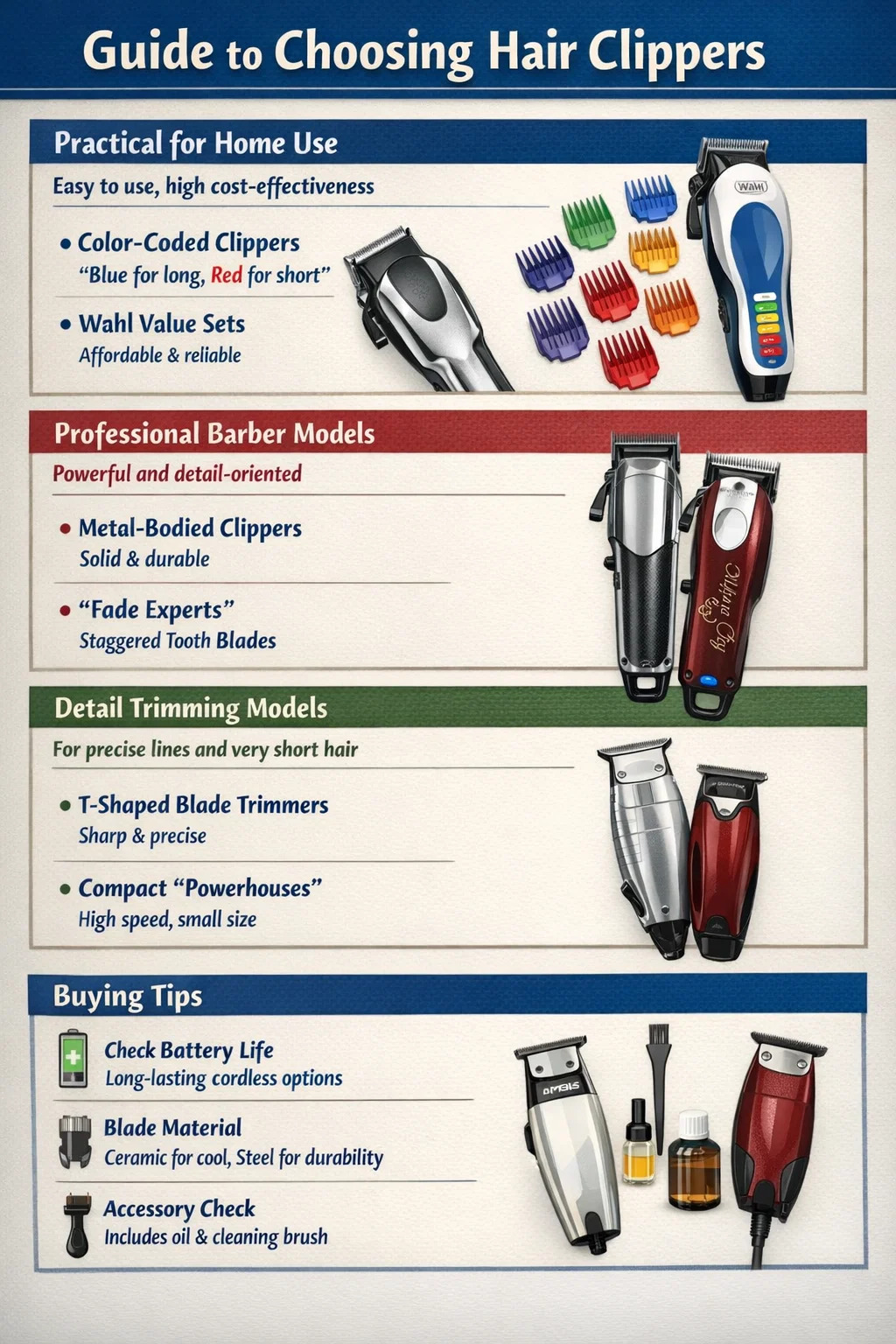 Za većinu ljudi koji jednostavno žele podšišati svoju kosu ili kosu svoje obitelji kod kuće, jednostavnost korištenja i kompletan pribor najvažniji su čimbenici.