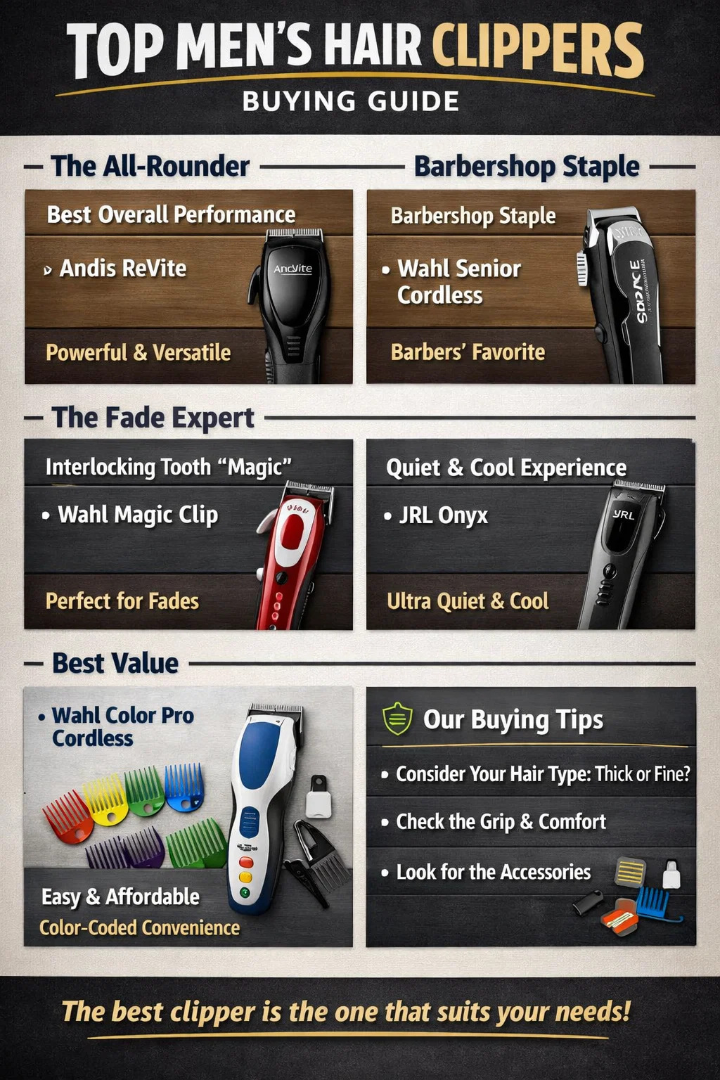 Najbolja ukupna izvedba (npr. Andis ReVite): Ovo je opcija najviše razine koja je trenutno na tržištu. Savršeno kombinira snažan motor profesionalne razine s praktičnošću kućne uporabe. Ne samo da je brzina rezanja iznimno velika, nego se oštrice također lako uklanjaju radi čišćenja, što čak i početnicima omogućuje da iskuse vrhunski osjećaj.