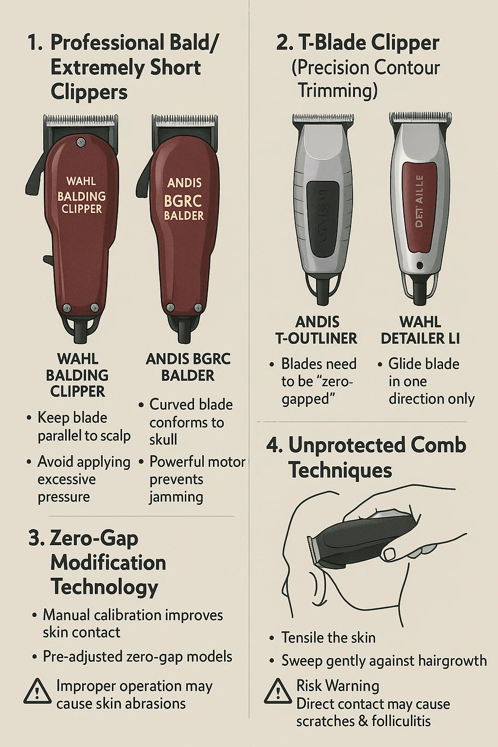 Prikladni scenariji: Preporučuje se samo za područja s glatkim linijama kose, zaliscima itd. ili za iskusne pojedince koji oblikuju ćelavost na cijeloj glavi.